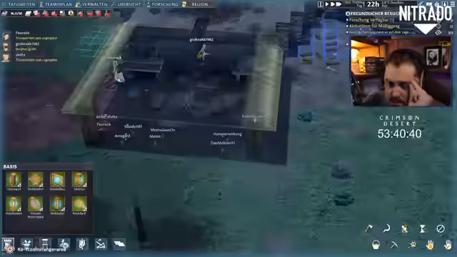 02:01:00Der Stream konzentriert sich auf den kontinuierlichen Aufbau der Siedlung namens New Rangers Starn. Der Streamer erweitert das Gelände um Berglandschaften und beginnt mit dem Bau weiterer Strukturen wie Holzböden. Es werden verschiedene Gameplay-Mechaniken angesprochen, darunter das Forschungssystem, das Dorfbewohner mit unterschiedlichen Fähigkeiten wie Bergbau, Botanik und Tierhaltung umfasst. Zudem gibt es technische Herausforderungen, wie Verbindungsabbrüche und Tonaussetzer, die den Gameplayfluss beeinflussen.