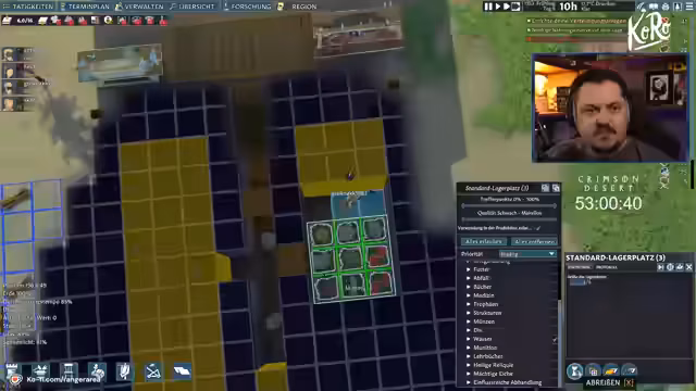 01:03:52Zu Beginn des Streamabschnitts beklagt sich der Streamer über den Chat, da dieser im Spiel Ressourcen und Nahrung in der Siedlung vernichtet. Anschließend wird die Verwendung der ästhetischen Wärmekarte diskutiert und ein geheimnisvolles Geschenk von einem Elanianer erwähnt, das 120 Hechte enthält. Das Management der Lagerplätze wird optimiert, indem separate Bereiche für Nahrung, Kadaver und Abfall eingerichtet werden, um die Ressourcenordnung zu verbessern.