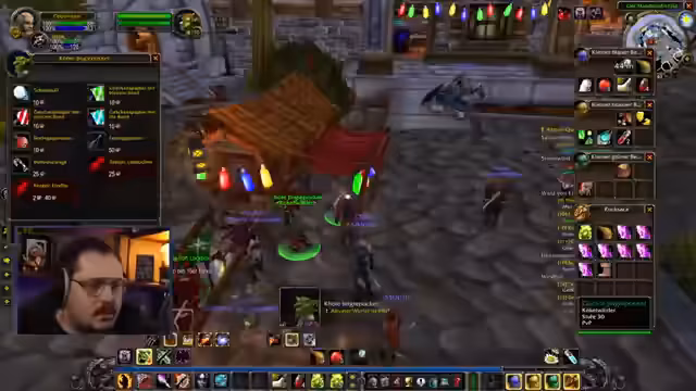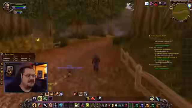 02:52:15Der Streamer sucht nach dem Konfektionsgeschäft und einem Zauberstabhändler im Magier-Viertel von Stormwind. Es folgt eine Diskussion über Zauberstab-Mechaniken: Ab Level 15 werden spezielle Stäbe verfügbar, deren Nutzen für Magier erklärt wird. Dabei werden Spielkomplexität und Guides für Hardcore-Anfänger thematisiert, während der Chat über klassische WoW-Lösungsbücher informiert wird. Ziel ist es, die Prinzessinnen-Quest vorzubereiten, wobei der Mangel an AOE-Damage (Flächenschaden) und die Notwendigkeit des 'Leeren Wandlers' (Beschwörungs-Pet) betont wird.