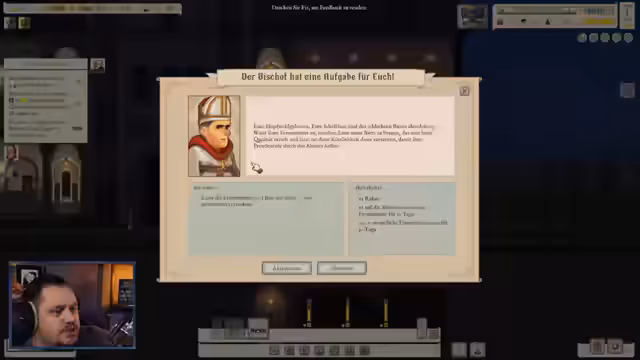 03:05:45Im Stream wird ein Edikt des Erzbischofs verkündet, das nur den Verkauf von frisch gebrautem Bier erlaubt, was zu einem Preisaufschlag führt. Der Streamer muss diese Regel für 14 Tage befolgen, was die Strategie beeinflusst. Gleichzeitig wird ein Giveaway für das Spiel 'Ausrufezeichen Ale' angekündigt, bei dem Follower die Chance haben, einen Schlüssel zu gewinnen.