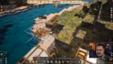 01:22:43Nachdem die Piratenabordierung abgelehnt wurde, beginnt der Streamer, das Spiel Whiskerwood intensiver zu erkunden. Er baut einen Bauernhof und untersucht die Bergbau-Mechaniken. Dabei vergleicht er das Spiel mit Timberborn und stellt Ähnlichkeiten im Aufbau und Ressourcenmanagement fest, bemerkt aber die fehlende Wassermechanik und stattdessen die Betonung des Bergbaus im Spiel.
