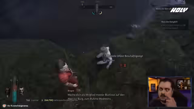 01:46:04Die Auseinandersetzung mit der Spielwelt und ihrer Geschichte tritt in den Vordergrund. Der Streamer erhält die Aufgabe, die Krypte zu stärken und die Silberveil zurückzubringen. Er spricht mit Dorfbewohnern wie dem Kutscher und trifft auf die Wahrsagerin Kreiter, von der er Informationen über eine Kreatur im Hain des Jammers erhalten soll. Dabei werden die Mechaniken des Kampfsystems und die Steuerung des Charakters getestet.