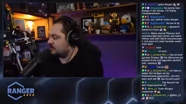 00:27:22Es folgen konkrete Pläne für den Stream: Die Landwirtschaft wird erweitert, ein Geräteschuppen für die Werkbank soll entstehen, und der Bau der Burgmauer wird fortgesetzt. Im Chat bricht eine lebhafte Diskussion über Arbeit aus, die in einen ironischen Vergleich mündet, dass für Streamer „Arbeit“ nur Spaß macht, solange sie kein Zwang ist. Die Unterhaltung schweift später zu philosophischen Themen wie Krankheitstagen in Deutschland und der persönlichen Einstellung zur Arbeit ab, wobei der Streamer seine Haltung zur Work-Life-Balance darlegt.