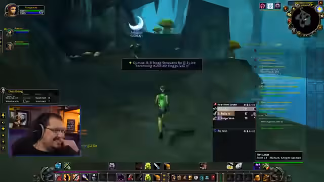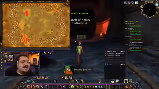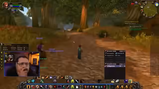 07:11:40Spieler organisieren sich für gemeinsame Elite-Quests in Westfall und Loch Modan, mit detaillierten Absprachen zu Routen (z.B. Flugpunkte in Sturmwind/Eisenschmiede) und Levelanforderungen. Neue Mitglieder werden integriert, wobei Quest-Sharing und Positionskoordinieren praktisch demonstriert wird. Der Streamer betont die Dringlichkeit, vor dem Event höhere Level zu erreichen, und nutzt den Chat für Navigationshilfen. Gleichzeitig werden Addons für bessere Stat-Anzeigen diskutiert und Parallelen zu anderen Spielen (z.B. Ark Raiders) gezogen. Die Interaktion zeigt effizientes Gruppenmanagement, während über Zeitmanagement für Dungeon-Runs und Ressourcenverteilung debattiert wird.