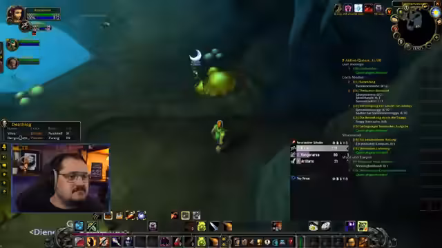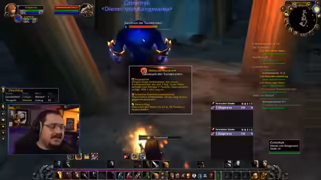 04:31:49Ranger bespricht die Schwierigkeit, vor Level 15 einen Zauberstab zu erhalten, und erwähnt, dass er Alchemie und Kräuterkunde nutzt, um Gegenstände zu craften. Er bemerkt humorvoll, dass das Spiel so anspruchsvoll sei, dass er kaum reden könne. Kurz vor dem Eintritt in die Höhle von Loch Moderne plant er, mit seinem Voidwalker (Pet) zu agieren und bereitet sich auf einen Kampf mit Elite-Gegnern vor. Der Chat gibt Tipps zur Positionierung und zum Mana-Haushalt.