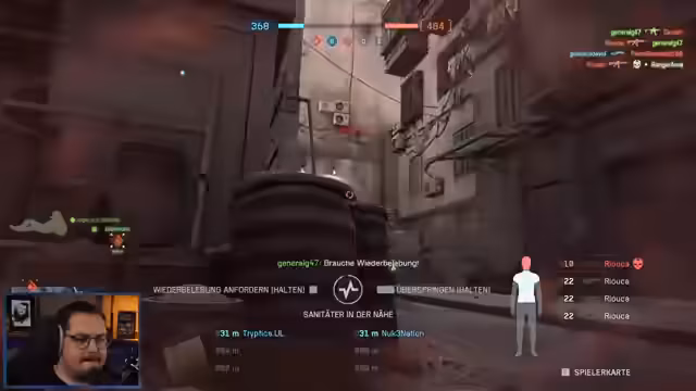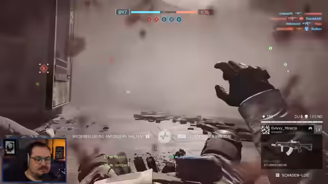 04:21:05Der Streamer diskutiert über Discord-Emote und teilt mit, dass sein Team im aktuellen Battlefield-Match nur den dritten Platz belegt. Es kommt zu spontanen Diskussionen über Wurstsorten, insbesondere Mettwurst versus Teewurst, und währenddessen kämpft der Streamer im Spiel und ruft nach einem Medic. Er bemerkt auch, dass sich sein Team weit hinten befindet und erwähnt, dass Rauchgranaten für Nebelwände eingesetzt werden.