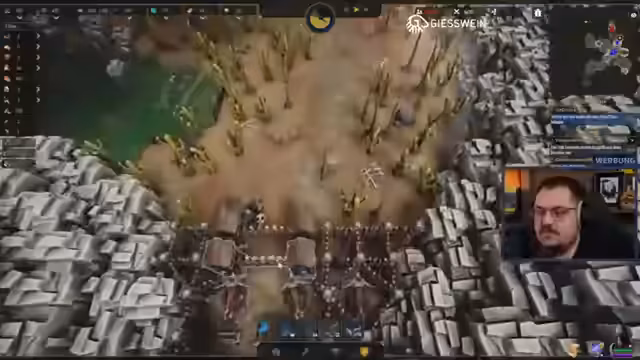 02:17:41Nachdem die grundlegende Infrastruktur steht, konzentriert sich der Spieler auf den Ausbau der Basis und die Verteidigung gegen anrückende Feinde. Es wird der Bau weiterer Gebäude wie einer Schreinerei zur Produktion von Brettern und einer Farm zur Nahrungsgewinnung vorangetrieben. Gleichzeitig bereiten sich die Spieler auf den ersten größeren Angriff von Orks vor und positionieren ihre Einheiten strategisch, um die Basis zu schützen. Der Mangel an bestimmten Ressourcen, insbesondere Holz, wird zu einem zentralen Problem.