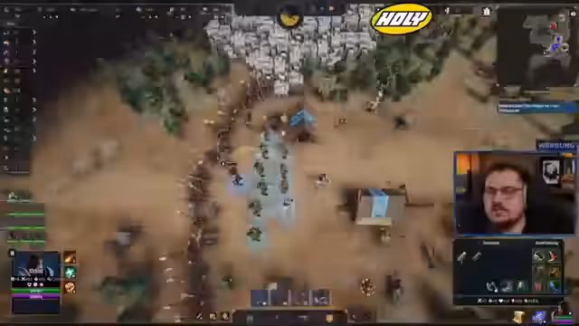 01:33:08Der Streamer startet eine Live-Demo des Spiels Darfall. Nach einer kurzen Einleitung, die Paradox Arc als Sparte für Indie-Spiele vorstellt, beginnt das Tutorial. Der Spieler steuert den Magier Eldrin und kämpft sich mit einer Gruppe von Helden-Einheiten durch eine Waldlandschaft, um Ork-Banner zu zerstören. Das Spielprinzip wird als Mischung aus Echtzeitstrategie und Rollenspiel beschrieben. Der Streamer rekrutiert einen verletzten Bergmann namens Bram zum Soldaten und sammelt Beute, die dem Helden Vorteile verschafft. Die Steuerung ist klassisch RTS-haft, aber das Spiel verspricht ein Fokus auf Heldenentwicklung, Stadtverteidigung und das Management von Ressourcen, um nächtlichen Horden standhalten zu können.