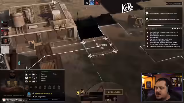 00:54:14Das Gefecht beginnt mit der Verteilung der Einheiten auf dem Schlachtfeld. Der Streamer platziert seine Trupps und ein Fahrzeug strategisch, gerät aber schnell in Schwierigkeiten. Bei der ersten Feindbegegnung mit 'Tuskenräubern' erleidet seine Truppe schwere Verluste. Die taktischen Fehlentscheidungen, wie ungeschickte Positionierung und das Unterlassen von Overwatch, führen zum Tod mehrerer Squadmitglieder und zum Scheitern der Mission.