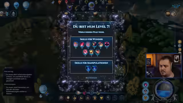 02:07:32Nach Abschluss des Tutorials beginnt der Streamer mit dem eigentlichen Gameplay in Vätergott. Er erkundet die Steuerung, baut eine Taverne und versucht, Gläubige für seinen Gott zu gewinnen. Er zeigt verschiedene Fähigkeiten und Wunder, die er einsetzen kann, und wird von der Schicksalsgöttin mit neuen Aufgaben konfrontiert. Er experimentiert mit verschiedenen Spielmechaniken und Strategien.