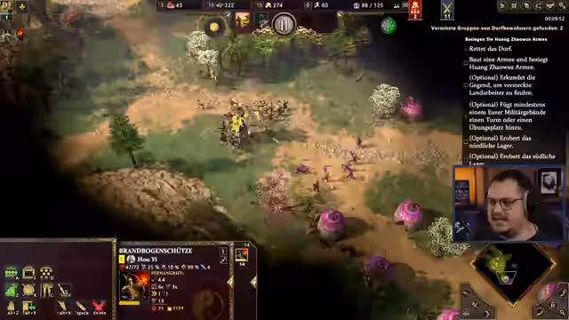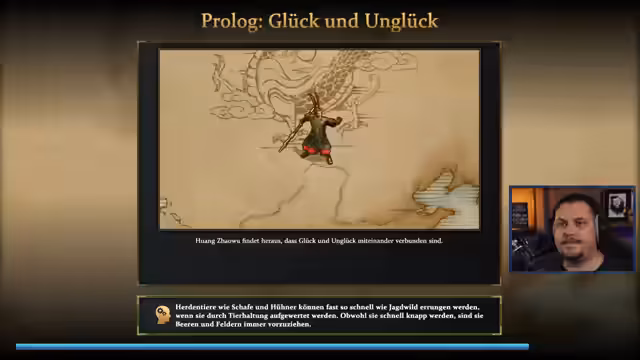 00:33:45Der Streamer startet das Spiel auf der Schwierigkeitsstufe 'Titan' und beginnt mit der ersten Mission der Kampagne. Er erkundet die Spielmechaniken, die Fähigkeiten der Helden und Einheiten, sowie die besonderen Eigenschaften der chinesischen Zivilisation. Er erwähnt die inspirierenden Elemente aus Dark Souls und versucht, sich mit den neuen Spielkonzepten wie dem Yin-Yang-System und den speziellen Einheiten vertraut zu machen. Der Streamer kämpft gegen feindliche Einheiten und versucht, die Missionen zu bewältigen, während er über die Grafik und den Sound des Spiels spricht.