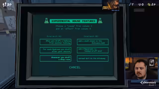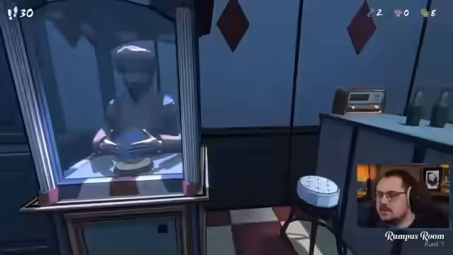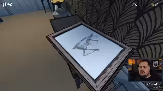 00:51:44Nach der Vorstellung beginnt das Gameplay von 'Blueprints'. Das Ziel des Spiels ist es, innerhalb von 46 Schritten den 46. Raum einer Villa zu finden. Jeder betretene Raum kostet einen Schritt. Der Streamer steuert den Protagonisten aus der Ego-Perspektive, muss in den einzelnen Räumen Rätsel lösen und entscheidet, welchen Pfad er einschlägt. Das Spiel ist roguelike-artig, da die Räume in jeder Runde neu angeordnet sind und kein Fortschritt über die Tage hinweg gespeichert wird. Er entdeckt ein Journal und einen Füllfederhalter als Inventargegenstände.