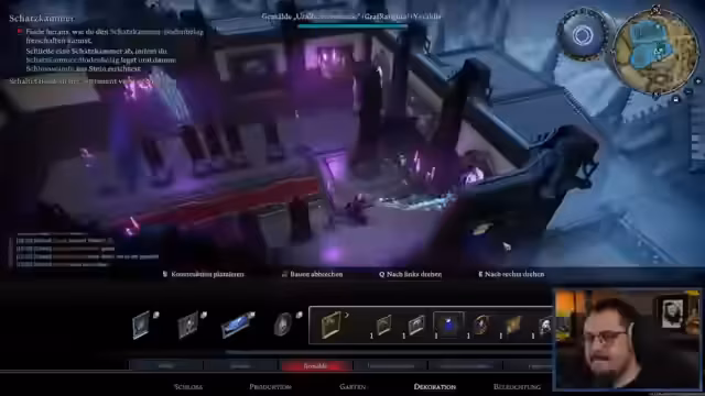 05:16:32Nachdem der Bau des Schlosses fortgeschritten ist, werden weitere Details und Funktionalitäten vorgestellt und erläutert. Dazu gehören die Gestaltung des Eingangsbereichs, der Thronsaal und die Anordnung von Möbeln. Auch die Rolle von Igor, einem NPC im Spiel, und sein Verhalten im Schloss werden besprochen, wobei die Herausforderungen der Raumgestaltung und NPC-Steuerung deutlich werden.