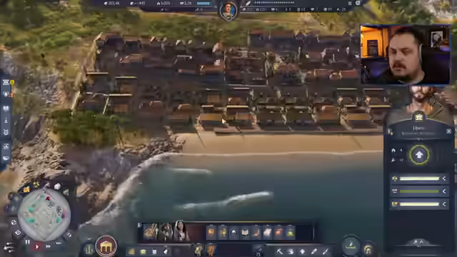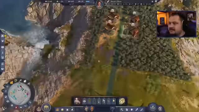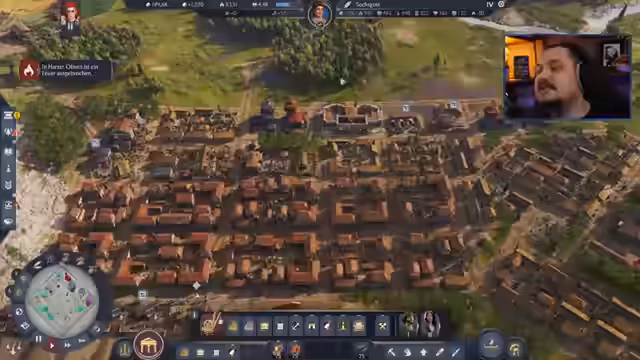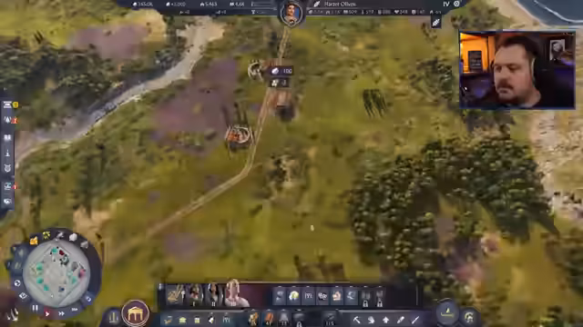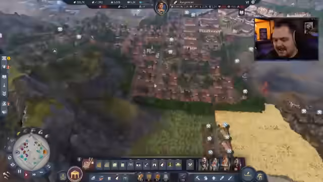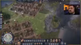 00:40:42Zurück im Spiel konzentriert sich der Streamer auf den Bau seiner Insel Harz in der Region Latium. Er zeigt seine vor dem Stream erstellte, dicht bebaute Siedlung und beginnt mit der weiteren Erschließung. Dabei experimentiert er mit der Ausdehnung von Feldern und diskutiert die Notwendigkeit, fürstliche Distrikte an strategisch günstigeren Orten zu platzieren, auch wenn diese dann schlechter versorgt sind.