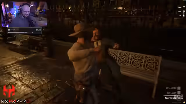 00:13:31Nachdem die technischen Probleme geklärt wurden, startet der Streamer offiziell das Roleplay als Helmut. Er reitet zur Emerald Ranch, trifft auf andere Spieler und interagiert mit NPCs. In Van Horn versucht er, ein Bier in einer Bar zu bestellen, aber die Bar hat keine Bierreserven. Stattdessen wird er mit einem selbstgebrannten Spiritus namens Met versorgt. Bei der Interaktion mit den NPCs kommt es zu Spannungen, als Helmut von einem Bürger als stinkend und ungepflegt bezeichnet wird, was zu einer hitzigen verbalen Auseinandersetzung führt.
