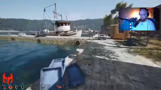 02:20:00Der Streamer erkundet einen Hafenstand und stellt fest, dass niemandem die Gegend gehört. Er verliert Intelligenz, als er sich selbst tötet, und erfährt, dass Gold beim Händler erhältlich ist ist. Er findet eine Lupe und erkennt, dass es in der Gegend Basen gibt, unter anderem mit einer Piratenflagge. Er vergleicht das Spiel mit Survival-Spielen und stellt fest, dass es dauert, bis man richtige Waffen findet und die Bunker erkunden kann.