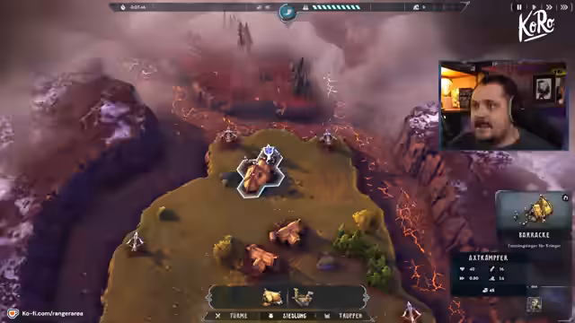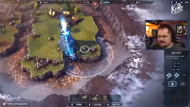 00:17:41Das Gameplay von 'Runensteigen' erweist sich als anspruchsvoll und vielschichtig. Gegnerwellen werden durch das Horn gestartet und greifen entlang eines bestimmten Weges an. Während der Strategiephase können Gebäude und Einheiten gebaut oder upgedatet werden. Die Einheiten sind auf den Inseln aktiv und müssen diese verteidigen, während Türme die Feinde auf dem Weg zum Heiligtum abwehren. Ein zentraler Punkt der Kritik des Streamers ist die Wegfindung der Einheiten, die er als buggy und für den Hintern bezeichnet, da sich Einheiten oft festfahren oder ineffektiv agieren. Der Held des Stammes kann sterben und wird nach einer Abklingzeit wiederbelebt, was die Spiel dynamisch gestaltet.
