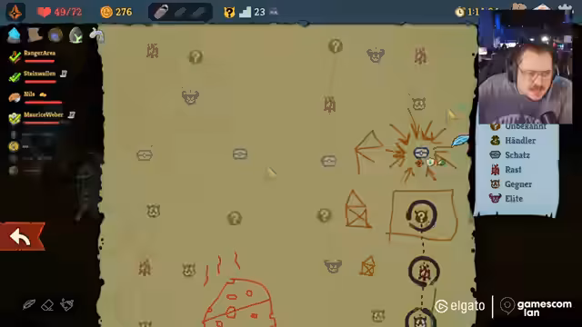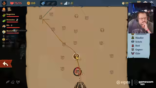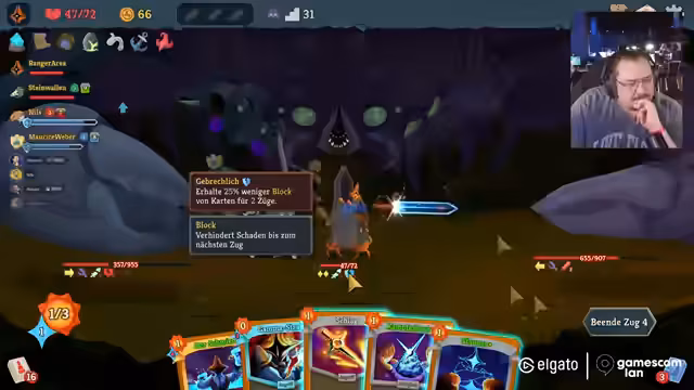 04:11:39Nach dem Ende des Strategiespiels wechselt der Streamer zu Slay the Spires für einen Koop-Modus. Zusammen mit Maurice und Nils startet er eine neue Runde. Maurice übernimmt die Rolle des Erklägers und führt die anderen in die Grundlagen des Deckbuilding-Spiels ein. Das Team muss gemeinsam Kämpfe bestreiten, Karten synergisch kombinieren und strategische Entscheidungen über den Weg durch die Welt treffen.