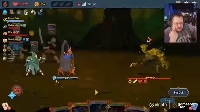 03:29:32Zu Beginn des Streamings spielt der Streamer ein Strategiespiel, das als Mischung aus Warcraft und Starcraft beschrieben wird. Es handelt sich um ein 3-gegen-3-Spiel gegen die anderen Streamer Nils und Maurice. Der Fokus liegt auf dem Bau von Bauernhöfen, der Produktion von Nahrung und dem Errichten von Verteidigungsanlagen wie Kasernen und Türmen. Der erste große Kampf gegen einen Lich verläuft für den Streamer und seine Allianz mit Nils katastrophal, was zu der Erkenntnis führt, dass Expansion und eine bessere Verteidigung strategisch notwendig sind.