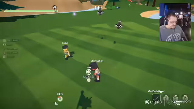 00:15:35Um die Wartezeit zu überbrücken, werden verschiedene Spiele für den Stream vorgeschlagen und besprochen. Dazu gehören neben den bereits genannten Titeln auch Spiele wie Among Us, Overcooked 2, Human: Fall Flat, Worms und Blobby Volley. Der Fokus liegt dabei auf strategischen und kooperativen Spielen. Anschließend wird eine erste Kooperation mit dem Streamer Steinwein gestartet, bei dem der Streamer ihn via mobiler Kamera durch die Hallen führt, um einen Eindruck von der Gesamtatmosphäre zu vermitteln.