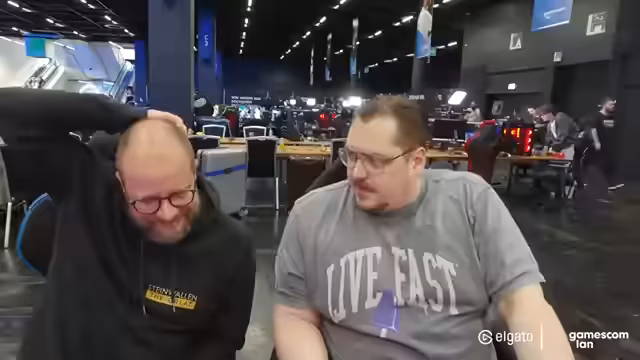 00:00:00Der Stream startet mit der Initialisierung des technischen Setups. Nach einem erfolgreichen Raid von 77 Zuschauern beginnt der Streamer mit der Einrichtung der OBS-Software, um das Bild und den Ton für das Publikum anzupassen. Er berichtet von den ungewohnten Bedingungen der Gamescom-LAN, da ihm sein gewohntes Equipment wie Systemkamera, Soundboard und Gimbal fehlt. Nachdem die technischen Schwierigkeiten behoben sind, präsentiert er kurz seinen Platz in der Halle und die umliegenden Streamer wie Maurice, Steinwein und Jen.