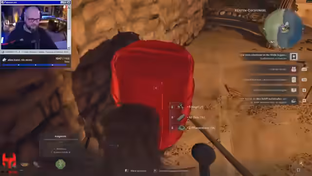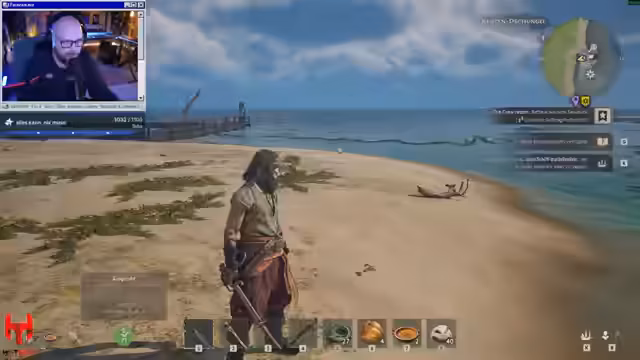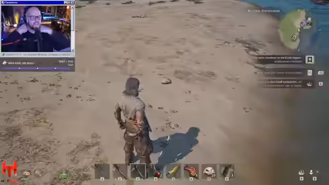 02:50:20Der Streamer findet ein gestrandetes Schiff und startet die Reparatur. Hierfür benötigt er Holz, Nägel, Rumstoff und Seile. Die Quest wird als zeitintensiv empfunden, da viele Ressourcen gesammelt werden müssen. Währenddessen wird das Inventar geordnet und unnötige Gegenstände verworfen. Es wird eine Diskussion über die Notwendigkeit einer Crew geführt.