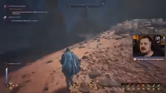 05:32:13Im Zuge der Quest-Bearbeitung kommt es zu Kämpfen mit feindlichen NPCs. Der Streamer bewegt sich in eine PvP-Region, in der er von Scharfschützen aus der Luft beschossen wird. Er ist begeistert von den Over-Shoulder-Kämpfen und kommentiert die Gefahren des PvP-Modus, bei dem der gesamte Fortschritt verloren gehen kann. Dies ist auch ein Grund, warum er nach eigenen Aussagen aufhören könnte, das Spiel zu zocken.