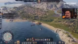 00:40:47Die Wirtschaft wird durch den Bau von Produktionsgebäuden für Holz und Fisch ausgebaut. Es entsteht eine erste funktionierende Wertschöpfungskette. Kurz darauf greift ein Piratenschiff die Siedlung an. Der Streamer äußert seine Verwirrung über diesen Angriff, da er den Piraten zunächst freundlich begegnet war und erstmals mit militärischen Einheiten konfrontiert ist.