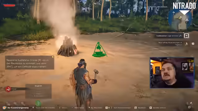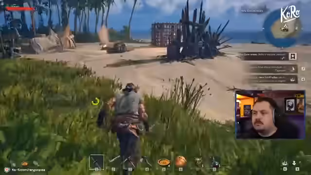 02:39:59Nachdem die Crewmitglieder gerettet wurden, wird das Ziel verfolgt, eine Schnellreiseglocke zu bauen, um die Reisezeit zu verkürzen. Der Bau eines Zeltes als Respawnpunkt wird in Erwägung gezogen. Anschließend konzentriert sich der Streamer auf das Reparieren des Schiffes, das an Land liegt. Die benötigten Ressourcen wie Holz, Stoff, Nägel und Seile werden gesammelt und der Craft-Prozess wird im Detail beschrieben, wobei das UI mit New World verglichen wird.