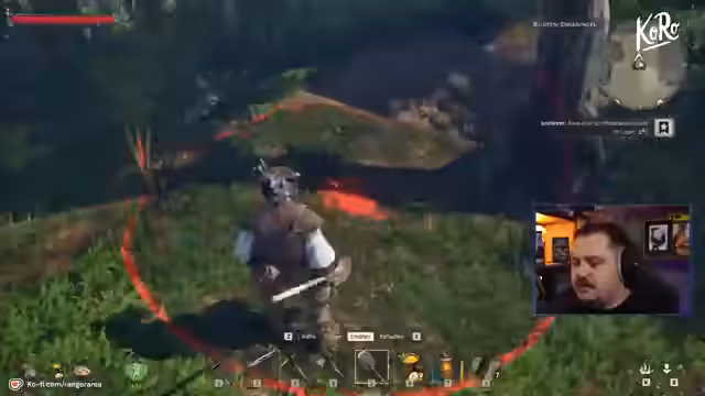 00:57:16Nachdem der Charakter aufgewacht ist, beginnt die systematische Erkundung der neuen Umgebung. Es wird eine Werkbank gebaut, um erste Werkzeuge herzustellen. Der Streamer vergleicht das Bausystem vorläufig mit dem von Enshrouded, stellt aber klar, dass dies im Detail noch anders sein könnte. Der Fokus liegt auf dem Sammeln grundlegender Ressourcen wie Holz und Pflanzen, um den Anfangsfortschritt zu sichern.