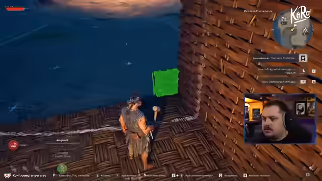 03:43:38Nach der erfolgreichen Rettung der Crew wird der Bau einer Schiffsbauwerkstatt in Angriff genommen, die aus Grobem Stoff hergestellt wird. Es besteht der Wunsch, dass die Crewmitglieder zukünftig vom Schiff absitzen und im eigenen Städtchen interagieren können, ähnlich wie in Colony-Sims. Der Streamer holt zusätzlich mehr Holz und Kupfer ein, da diese Ressourcen für den weiteren Fortschritt entscheidend sind.