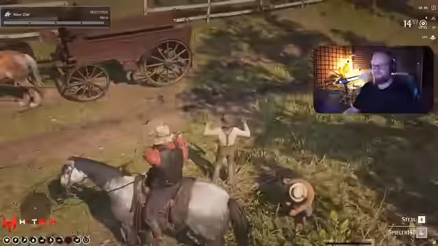 02:36:16Die Gruppe bemerkt, dass sie verfolgt werden und muss sich entscheiden, wie sie reagieren sollen. Helmut schlägt vor, die Verfolger auszukundschaften, bevor sie angreifen. Er verliert dabei seine Schuhe, was die Lage noch erschwert. Die Gruppe diskutiert verschiedene Fluchtstrategien und plant, die Pferde bereitzuhalten, falls sie zu schnell sind. Dipper signalisiert, dass die Verfolger zu schnell unterwegs sind, was die Sorge in dergruppe erhöht, nicht entkommen zu können.