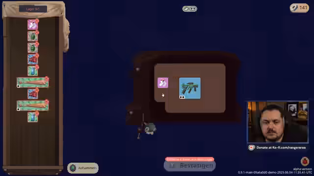03:08:24Nach Abschluss einer Runde wird der Metaprogression-Bildschirm gezeigt. Mit den 'Äpfeln', die man am Ende eines Durchlaufs erhält, können die Basiswerte des Charakters wie maximales Leben oder Angriffsgeschwindigkeit dauerhaft verbessert werden. Dies ist der Kern-Langzeitmotivator des Spiels. Der Streamer startet eine neue Runde mit einem besseren Setup und zeigt, wie die gesammelten Items im Lager optimiert und für den nächsten Roadtrip vorbereitet werden. Er wechselt den Fokus von der Pistole auf eine Maschinenpistole (MP) für einen Nahkampf-Build.