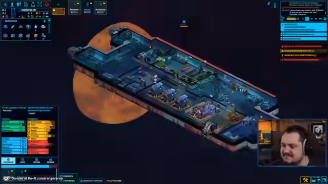 00:44:14Der Streamer beginnt mit einem Gameplay von Space Haven in einem Beta-Branch. Nach einem kurzen Recap der vorherigen Session erkundet sein Team ein verlassenes Schiff, um eine Hyperraumbarke zu bergen. Während der Erkundung kommt es zu einem Kampf gegen Aliens und die psychische Verfassung der Crewmitglieder, wie z.B. Nervenzusammenbrüche, spielt eine wichtige Rolle für den Spielverlauf.