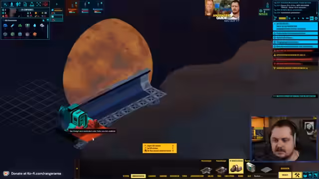 01:52:35Der Streamer konzentriert sich wieder auf die ursprüngliche Mission, eine Agrarstation im Sheridan Territorium zu bauen. Nach Fehlversuchen und Flug in den falschen Sektor trifft er schließlich auf eine Versorgungsstation und beginnt mit dem Bau. Die Konstruktion erweist sich jedoch als schwierig, da das Schiff über keine notwendigen Ressourcen wie Infrarotblöcke verfügt, und die Station muss erst erforscht werden, bevor sie vollständig genutzt werden kann.