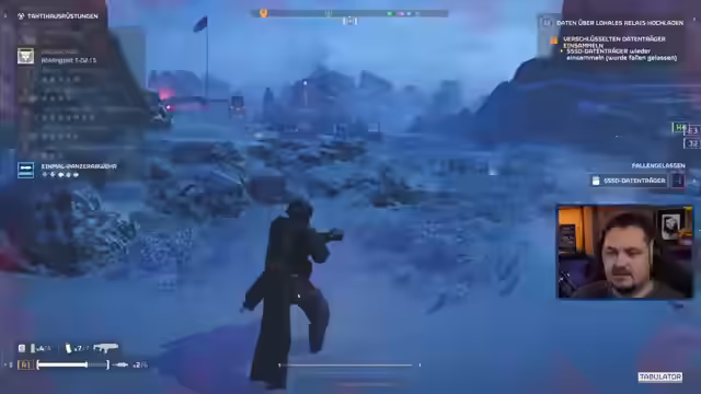 03:51:14Die Spieler wählen Perks aus und starten die Mission. Es wird erklärt, dass durch Drücken der Steuerungstaste ein Menü geöffnet wird, in dem man Ausrüstung anfordern kann. Ein Spieler hat versehentlich Nachschub geholt. Es wird betont, wie wichtig es ist, selbst nachzuladen und nicht zu früh, um Munition zu sparen. Die Gruppe navigiert zu orangenen Punkten auf der Karte, um Missionsziele zu erreichen. Ein Spieler benötigt Hilfe, da er von Gegnern umzingelt ist. Die Gruppe versucht, Landungsschiffe mit einer Höllenbombe zu zerstören, wobei die Koordination und das Zünden der Bombe eine Herausforderung darstellen. Es wird erwähnt, dass man durch Springen mit der Alt-Taste einen Hechtsprung ausführen kann, um sich aus brenzligen Situationen zu retten.