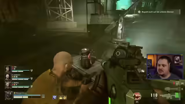 01:09:30Ein Spieler zerstört ein ketzerisches Götzenbild und fordert Anerkennung. Die Gruppe diskutiert die Notwendigkeit, diese auf der Karte verteilt zu zerstören. Es wird über Munitionsmangel und das Finden von Kisten diskutiert. Ein Spieler hört ein Lachen und vermutet einen Suicide-Explosions-Dude. Die Gruppe kämpft gegen dicke Gegner und erreicht einen Sicherheitscheckpoint mit einem Elevator. Das Spiel erinnert an ein anderes Spiel, bei dem man die Augen offen halten muss. Ein Spieler ist unzufrieden mit seiner Laserwaffe und wünscht sich ein Scharfschützengewehr. Ein Datensammler muss beschützt werden, während er von Gegnern angegriffen wird. Die Situation wird mit einem Berliner Rave verglichen. Ein Spieler wird niedergeschlagen und muss ein Minispiel spielen, um wiederbelebt zu werden. Die Grafik wird gelobt. Es wird überlegt, ob Granaten Schaden anrichten. Ein Spieler schneidet Tomaten und Gurken in der Küche. Munitionsmangel wird erneut thematisiert, und ein Spieler kämpft mit der Schaufel. Die Gruppe stürmt vorwärts und wird von einer großen Anzahl Gegner überrascht. Ein Spieler wird mehrfach niedergeschlagen und wiederbelebt. Das Spiel wird als geiles Left 4 Dead bezeichnet. Ein Spieler fragt nach der Bedeutung lila Balken und findet eine Spritze, die er sich direkt injiziert. Es wird gescherzt, dass dies wie auf einem Berliner Rave sei. Ein Spieler initiiert versehentlich etwas Brennendes und sucht nach Heilung.