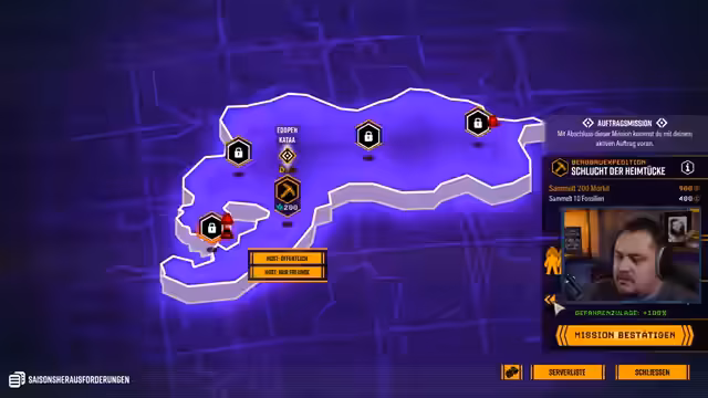 02:28:49Die Streamer konzentrieren sich auf das Sammeln spezifischer Ressourcen wie Fossilien und 'Edo-Nüsse' (Alien-Eier) für aktuelle Missionen. Sie müssen diese an bestimmten Abgabestationen hinterlegen und gleichzeitig gegen immer stärker werdende Gegner überleben. Die Karte vergrößert sich während der Mission, und die Spieler müssen sich orientieren, während sie Ressourcen sammeln und strategische Positionen einnehmen.