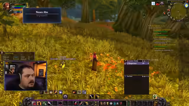 01:38:44Der Streamer wettet selbstbewusst, dass sein WoW-Charakter nicht sterben wird – falls doch, verspricht er sechs Monate Spielzeit als Giveaway. Er erklärt seine bisherigen Tode durch Ablenkung und betont die Wichtigkeit von Konzentration. Gleichzeitig wird der neue Event-Charakter (Mrs. Ranger) vorgestellt und mit humorvollen Backstory-Elementen ausgeschmückt.