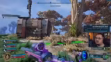 01:47:12Die Streamer erkunden die Spielwelt und sammeln Loot, wobei sie auf die verschiedenen Waffentypen und deren Eigenschaften eingehen. Die Kommunikation ist wichtig, da man sich für den Loot absprechen muss. Olli läuft voraus, während die anderen seine Richtung markieren, und sie erreichen schließlich den Turm als nächste Zielmarke.