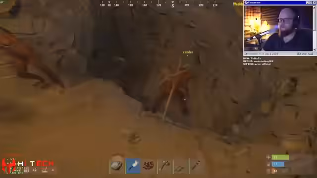 06:02:40Während der Erkundung wird ein Schwein vor der Basis gesichtet und anschließend gejagt und eliminiert. Kurz darauf findet ein Spieler eine Leiche mit Holzrüstung und Holzbeinschutz. Die Werte der Rüstung werden als schlecht eingestuft, jedoch ist der genaue Zustand unklar. Gleichzeitig wird über die With-Nacht gesprochen, in der wenig sichtbare Inhalte und fehlende Technik beklagt werden. Der Streamer beschreibt, wie er viel Inventarplatz aufgeben muss, um Metallschrott zu holen, was den Aufbau verzögert.