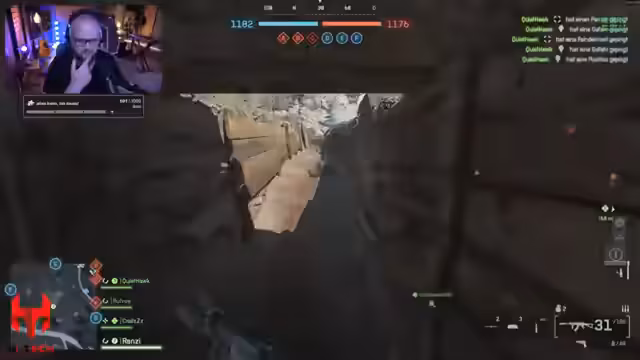 01:31:33Der Streamer wartet auf den angekündigten Streamer Luke, der sich jedoch etwas verspätet. Während der Wartezeit spielt der Streamer weiter und diskutiert im Chat über die Maps, auf denen der Little Bird am besten funktioniert. Als Luke schließlich eintrifft, schließen sie sich zusammen und spielen im Squad. Der Streamer konzentriert sich weiterhin auf die Eroberung von Flaggen und das allgemeine Gameplay, während er über technische Details seiner Hardware, wie sein Mikrofon, spricht und dabei seine Vorlieben im Audiobereich erklärt.