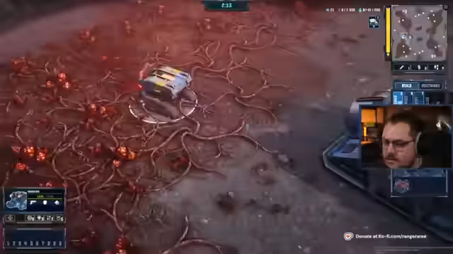 04:06:23Nachdem die Tempest Rising-Demo heruntergeladen wurde, startet der Streamer ein Multiplayer-Skirmish-Spiel. Er erklärt die grundlegenden Spielmechaniken, das Ressourcenmanagement mit Wurzeln als Primärressource, das Forschungssystem und den Bau von Einheiten wie Infanterie und Fahrzeugen. Er beginnt mit dem Aufbau seiner Basis, stellt Baracken und eine Raffinerie auf und erkundet die Einschränkungen des Baubereichs, um einen strategischen Vorteil zu erlangen.