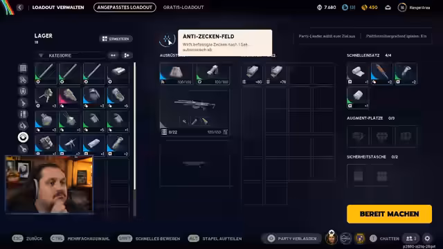 02:20:26Der Chat scherzt über die Konsistenz von Durchfall. Es wird geklärt, dass unter Hustenbonbons Ricola-Dinger oder Eukalyptus-Bonbons verstanden werden. Der Streamer überlegt, ob er mit einer Pharaoh-Waffe in die nächste Runde gehen soll, aber es wird empfohlen, die mit Zucker zu nehmen, obwohl dies nicht garantiert, dass nichts passiert. Er hat früher Hustenbonbons wie Haribo-Süßigkeiten gegessen. Er überlegt, eine Kettle zu craften, da er viele Rattlers und Stitcher hat. Es wird der Unterschied zwischen Rattler 1 und 3 erklärt (Munitionsart und Magazingröße). Er entscheidet sich für eine Apache mit Aufsätzen oder eine Schrotflinte, die er sonst nie benutzt. Ein Safe Pocket ist nützlich, um Gegenstände sicher zurückzubringen. Man kann die graue Kiste zu einer grünen upgraden, was der Streamer normalerweise macht. Er nimmt Granaten mit und muss Munition einpacken, was manchmal schwierig ist.