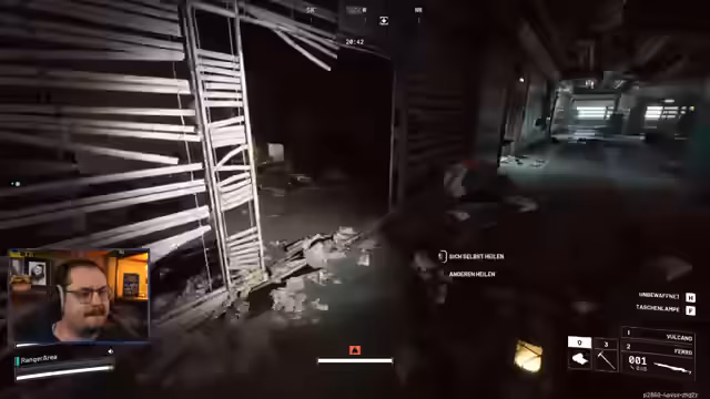01:16:43Der Streamer kämpft mit einem Rocketeer, der immer wieder über das Gebiet fliegt. Er merkt an, dass das Spiel gut optimiert ist und bei ihm auf Ultra-Einstellungen in 2K-Auflösung läuft, während er gleichzeitig streamt und aufnimmt. Es wird erklärt, dass man im Extraction-Bunker nicht sofort sicher ist; erst nach Ablauf einer 5-sekündigen Konsole-Interaktion und dem Erscheinen der Nachricht 'Zurückkehr nach Speranza' ist man vollständig geschützt. Das Spiel wird mit 'Escape from Tarkov' verglichen, jedoch als zugänglicher und 'casual'-freundlicher beschrieben, ähnlich wie 'Division'. Der Streamer plant, seine Werkstatt und Waffenstation zu verbessern, benötigt dafür aber Feuerballbrenner, die er bisher nicht erfolgreich looten konnte. Das Inventar ist bereits wieder voll, weshalb er überlegt, Gegenstände wie ein Hundehalsband zu verkaufen, das für das Training von Hühnern benötigt wird.