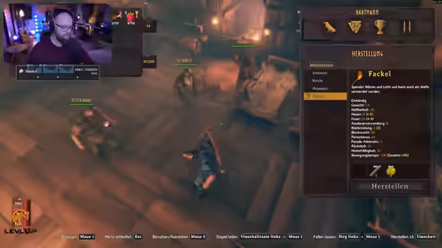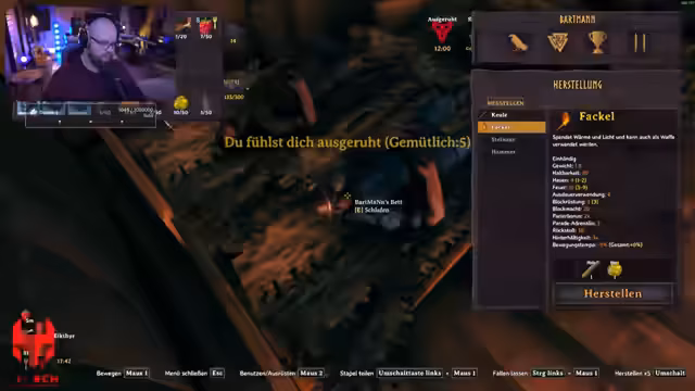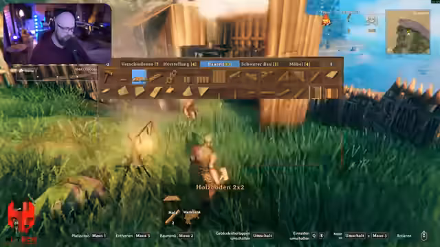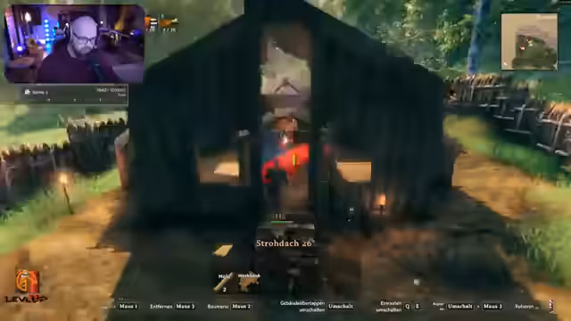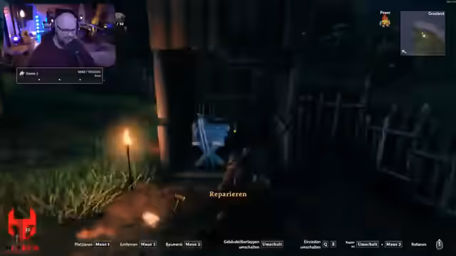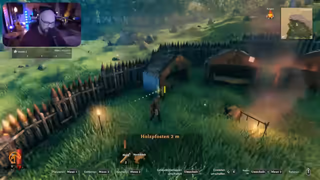 01:40:32Der Streamer beginnt mit der Verarbeitung von Wildschweinfleisch, als ein verbündeter Spieler warnend hinzugefügt wird. Es folgt ein intensiver Kampf gegen einen großen Troll, bei dem mit Fackeln und Äxten gekämpft wird. Nach mehreren Versuchen gelingt es, den Gegner zu besiegen. Anschließend wird die Errichtung einer ersten provisorischen Hütte diskutiert, wobei Herausforderungen mit der Platzierung von Betten und dem Schutz vor den Elementen besprochen werden. Dabei wird deutlich, dass die physikalischen Mechanismen des Spiels die Konstruktion erschweren und ein stabiles Dach für Crafting-Stationen erforderlich ist.
