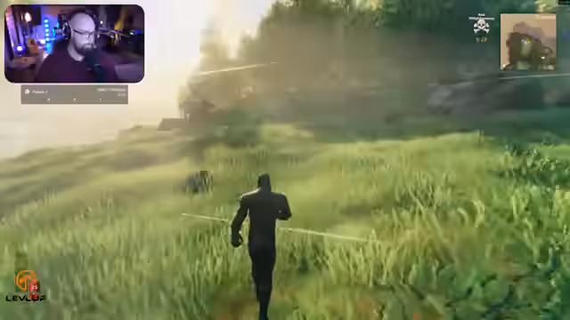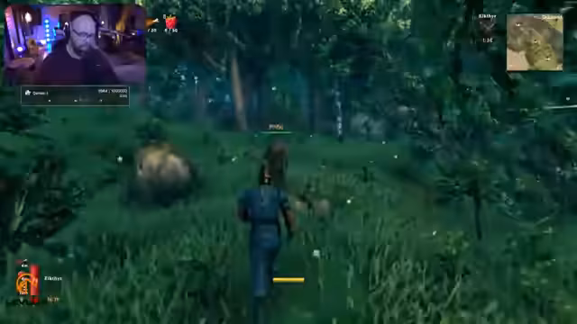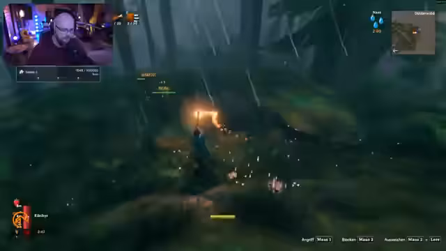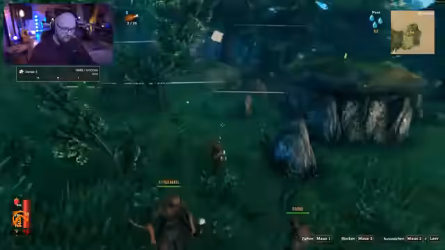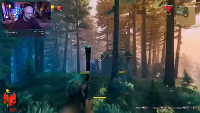 00:42:29Streamer installiert Valheim, da der Server von Samson läuft. Erstellt einen Charakter mit Bart und diskutiert mit dem Chat über Grafikeinstellungen. Startet das Spiel, spawnen in der Welt und wird sofort von einem Wildschwein angegriffen. Sammlung von Ressourcen wie Holz und Steinen für den ersten Unterstand. Interaktion mit Darky, der ebenfalls auf dem Server ist.