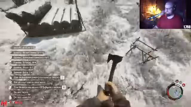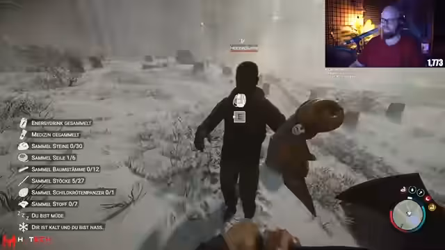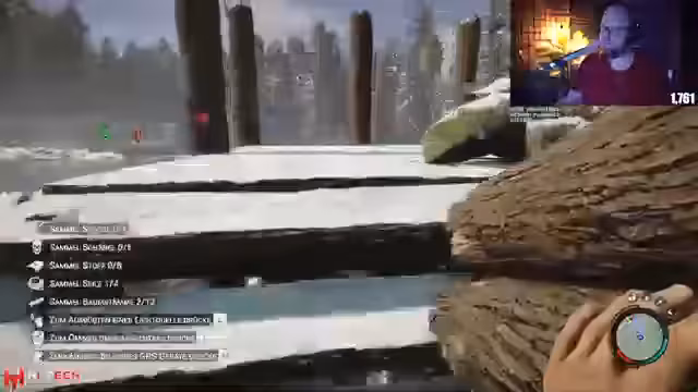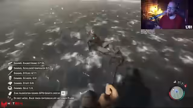 00:00:09Der Stream beginnt mit dem Einstieg in Sons of Forest, zusammen mit dem Mitspieler Herr Seelenlos. Der Streamer richtet eine Server-Einladung aus, die automatisch angenommen wird. Schnell stellt sich heraus, dass es am Anfang keinen Loot gibt und die Tasche direkt im Inventar spawnen muss. Die Basis wird mit zwei maximal tragbaren Baumstämmen gestartet und es wird auf Durst, Hunger und Ruhe geachtet, um die Vitalität hochzuhalten.