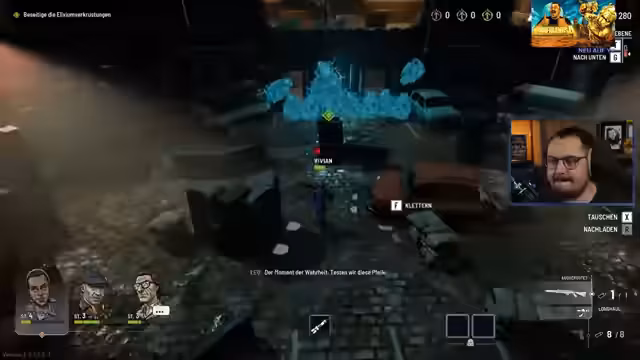 02:27:04Der Streamer geht detailliert auf die Spielmechaniken von Everyday We Fight ein. Er erklärt, wie Belohnungen in Truhen funktionieren: Je mehr Gegenstände in der Stadt gesammelt werden, desto vielfältiger ist die Auswahl. Durch auf höheren Heatstufen gefundene Silberschlüssel verbessert sich die Qualität der Beute. Gegenstände können in Werkbänken aus Schrott hergestellt werden. Der Streamer experimentiert mit den Waffenmodifikationen und entscheidet sich für ein Radler-Magazin und eine Haltbarkeit-Erhöhung, um seine Treffsicherheit zu maximieren.