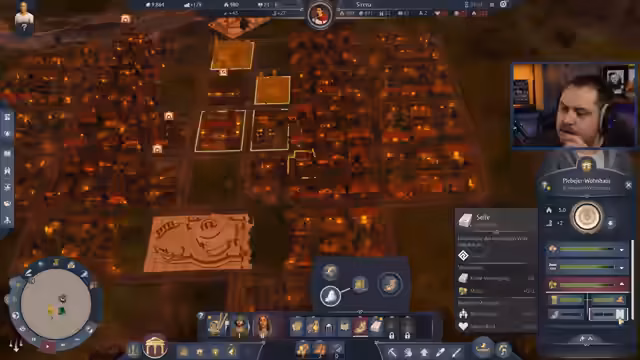 03:28:15In der neuen Region Latium beginnt der Streamer gezielter mit dem Aufbau. Er optimiert die Platzierung von Produktionsgebäuden wie der Mühle und dem Bäcker, um eine schnelle Versorgung mit Brot sicherzustellen. Währenddessen wächst die Einwohnerzahl stetig an und die Produktion von Gütern wie Seife und Sandalen wird auf Vordermann gebracht, um die Zufriedenheit der Bevölkerung zu erhöhen und das Limit von 2000 Einwohnern zu erreichen.